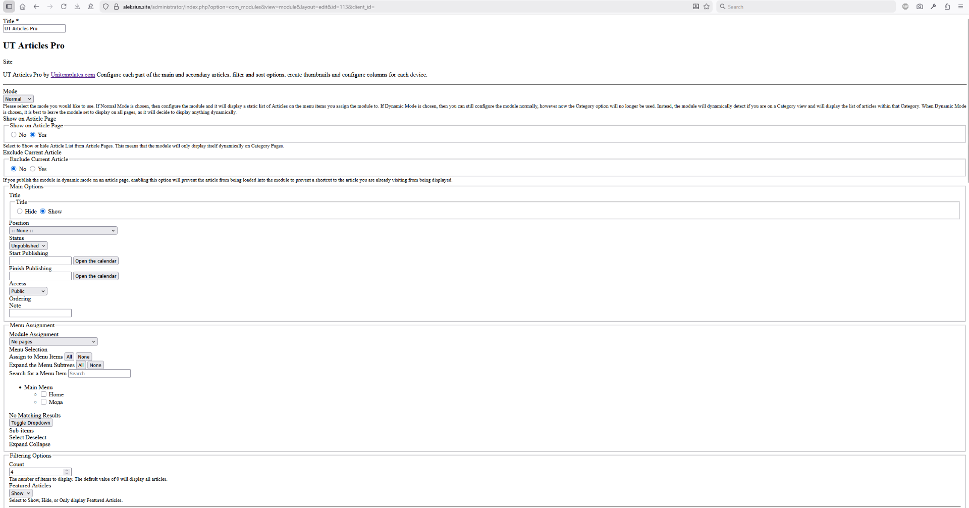 2) I installed the UT Articles Pro module, but when I log into the admin panel, the page is broken.